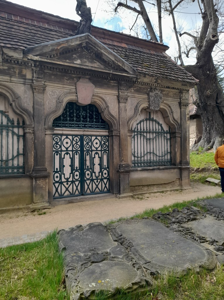 - Um die Mitte des 17. Jahrhunderts entstand die Sitte, dass sich die vornehmsten Familien Gruftkapellen als Erbbegräbnisse zulegten. Die ältesten von ihnen liegen auf der Westhälfte des Friedhofes – die erst 1624 in Anbetracht der vielen Todesopfer des Krieges hinzugewonnen wurden.