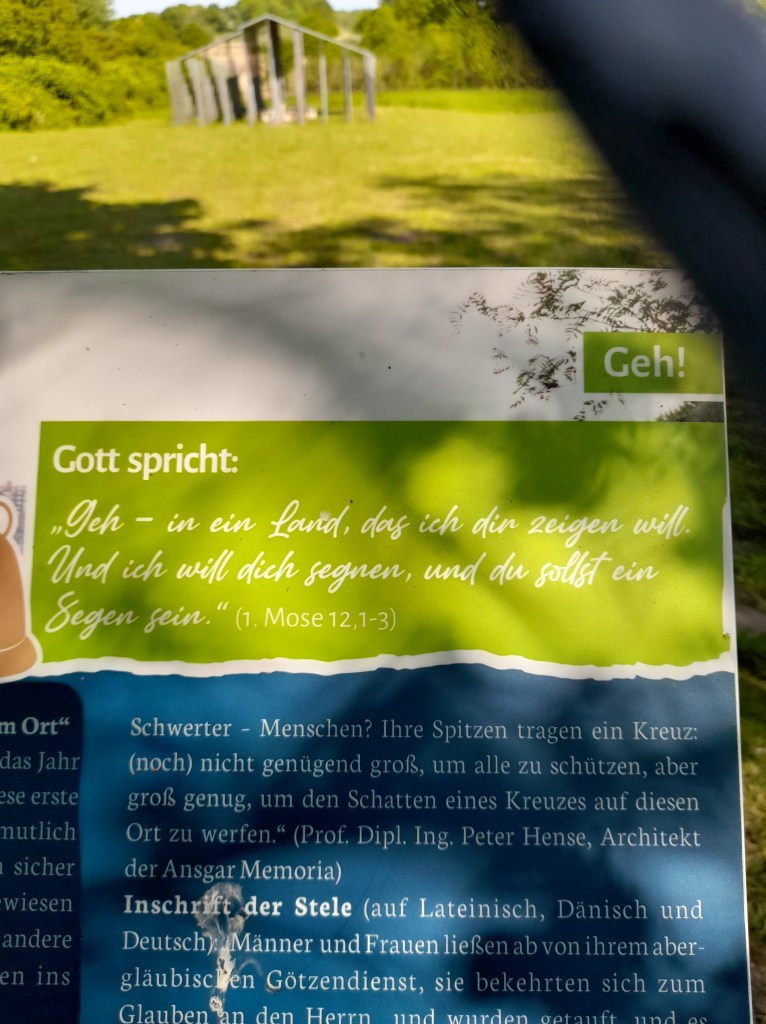 Vielleicht erinnert ihr euch? Auf dem Weg zu den Häusern Haithabus, die das damalige Siedlungsgeschehen gut vermitteln, fielen mir die zahlreichen Infotafeln auf, welche den Aufruf trugen: „Gott spricht!“ Darunter Psalmen und Auszüge aus der Offenbarung.