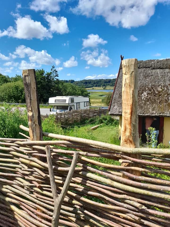 Wir durchfahren das Himmerland, ein sanft gewellter Teppich aus Getreidefeldern, Wiesen und Baumgruppen. In einer solchen Region fällt es nicht schwer einen schönen Übernachtungsplatz zu finden. Bert fährt entspannt auf seinen Platz. Und da stehen wir nun, ganz nah am Mariagerfjord und unweit der Wikingerburg Frykat.