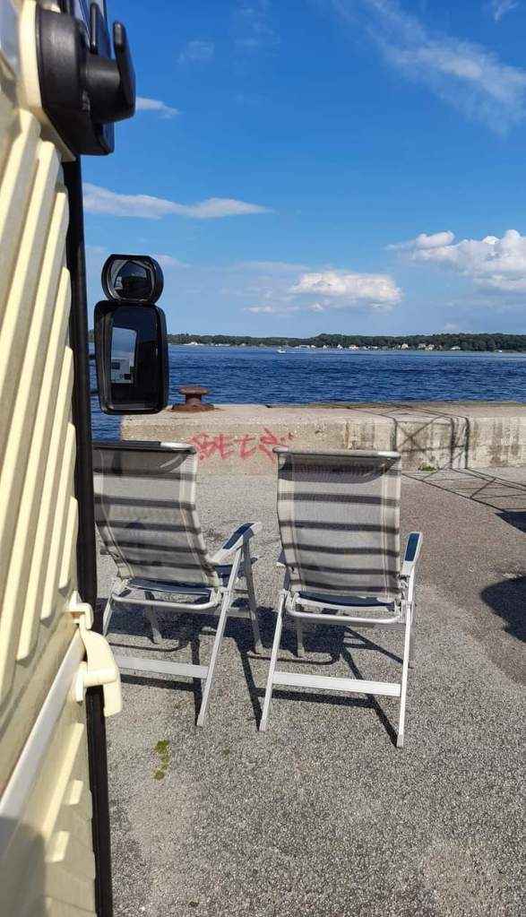 Am Abend stehen wir an der Meerenge zwischen der Halbinsel Jütland und der Insel Fünen. Ich denke, wir haben nun einen guten Ort gefunden. Dieses Mal keine Idylle im Wald, dafür fast „spektakulär“ am Kleinen Belt, der westlichsten natürlichen Verbindung zwischen dem Kattegat im Norden und der Ostsee.