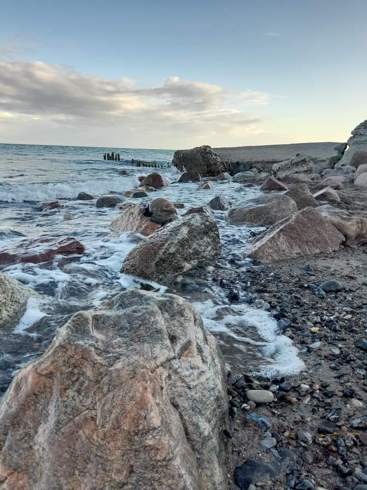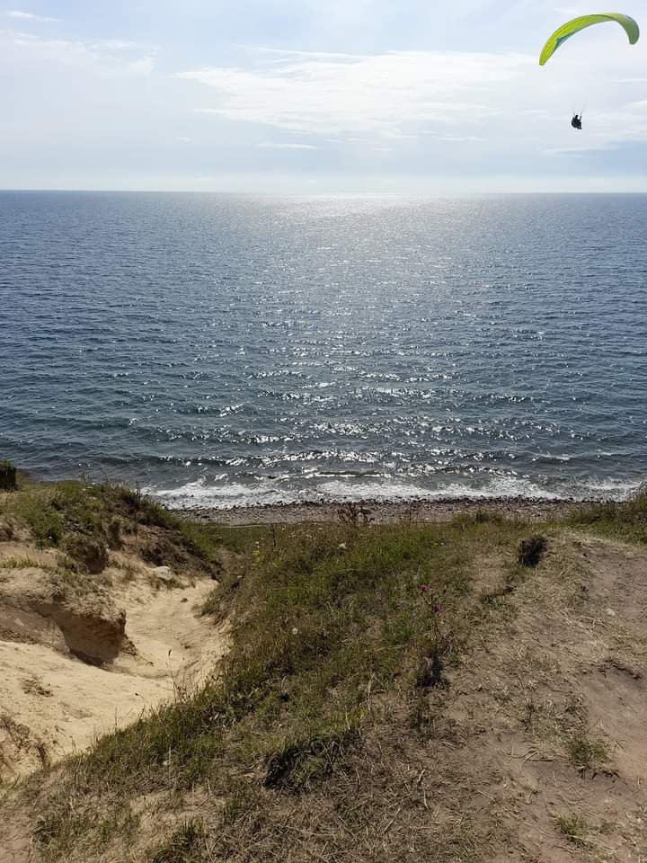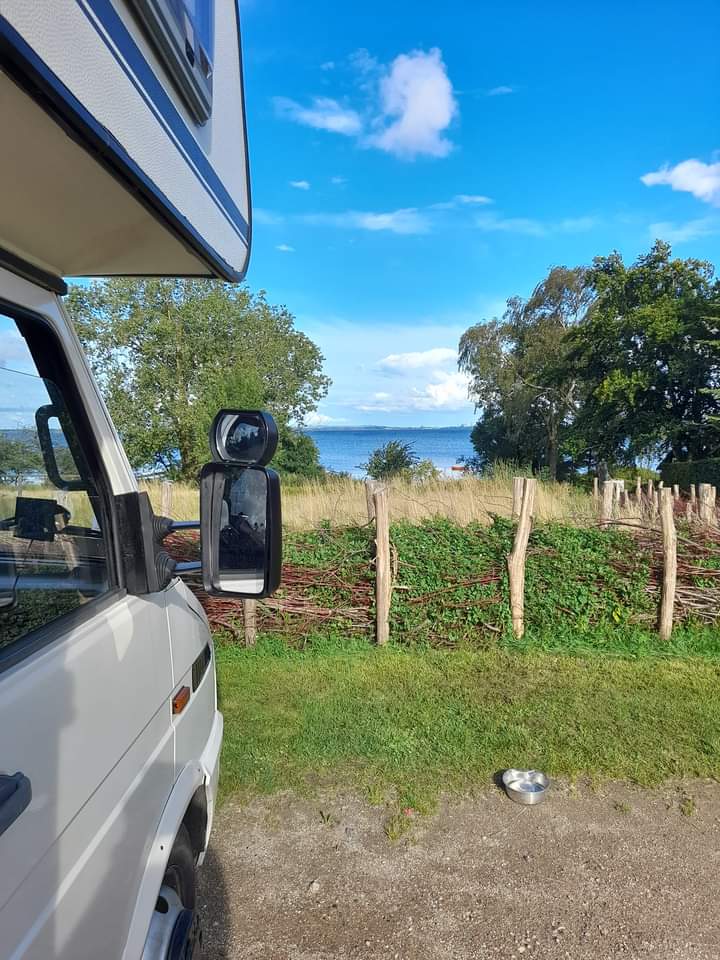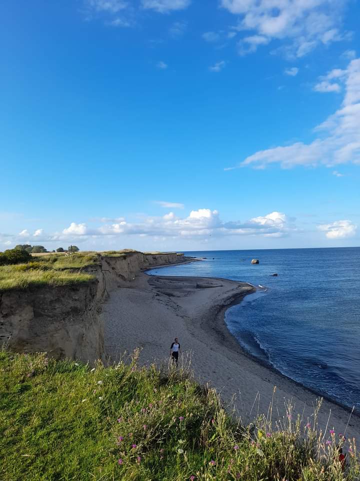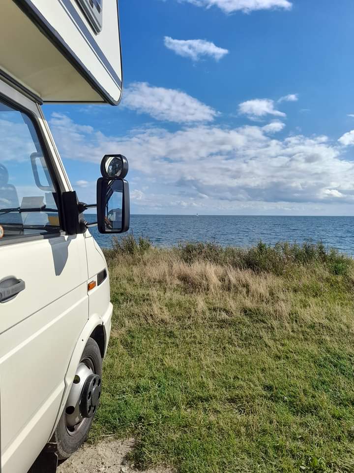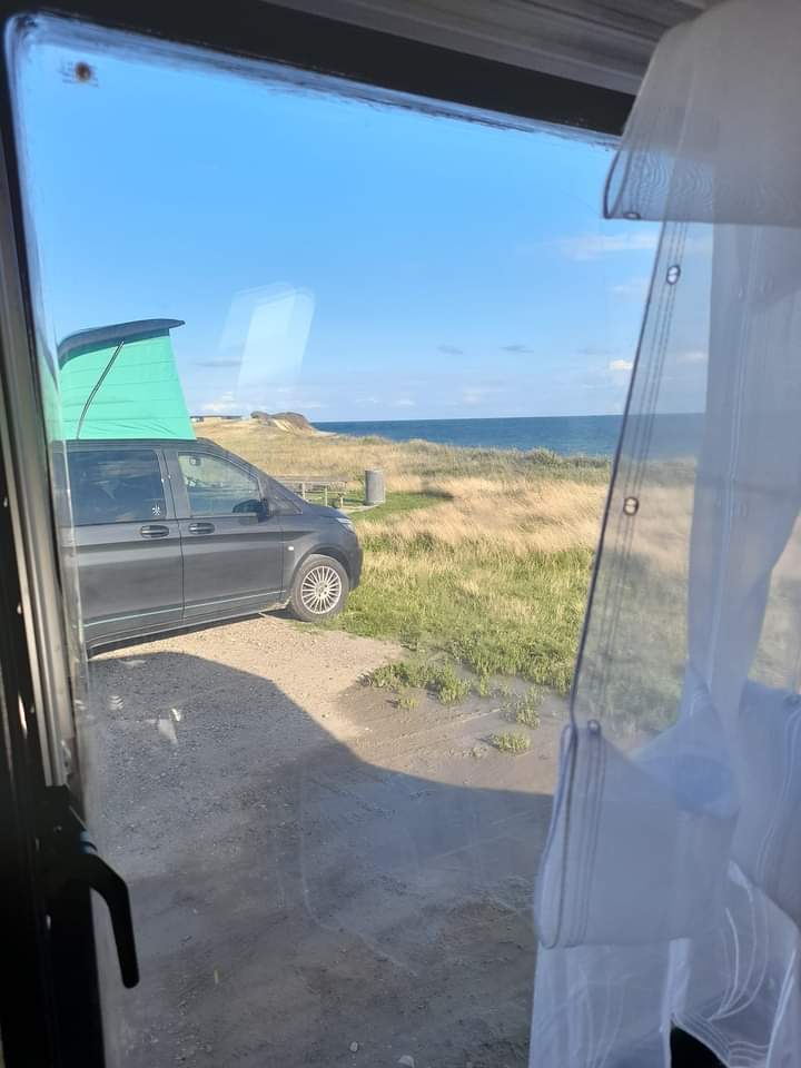 Auf den Bildern seht ihr unseren Platz in Skagen am Strand und von heute auf einer Klippe an der Gedser Odde.