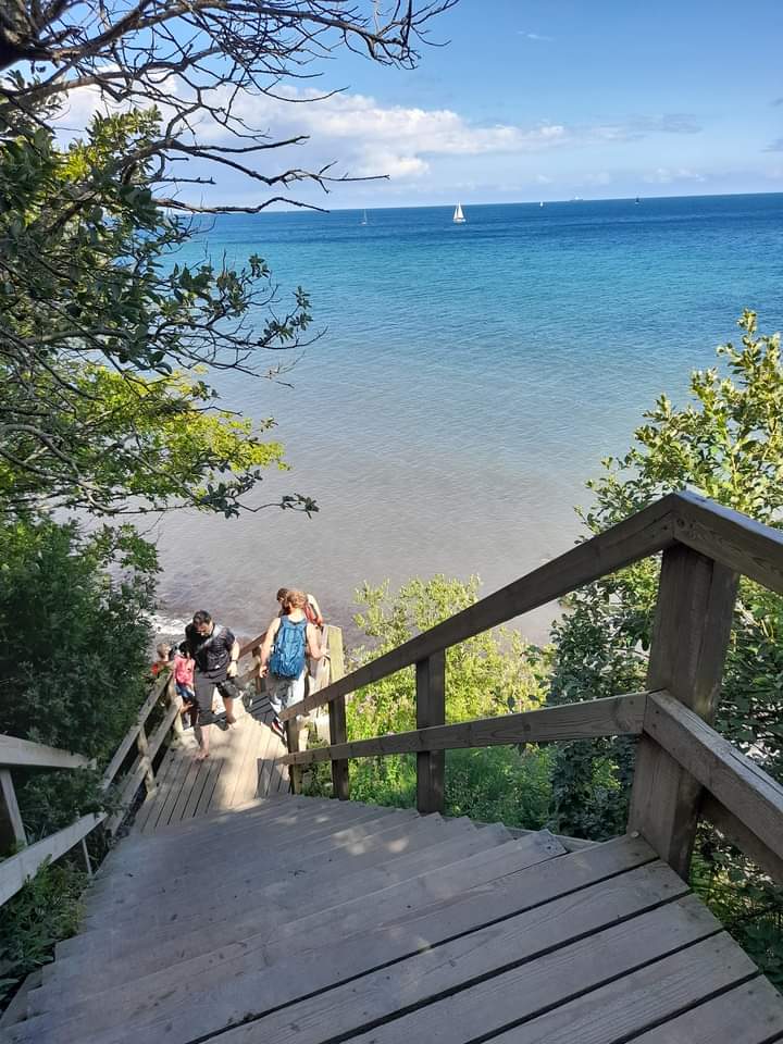 Auf zu den gewaltigen Steilabbrüchen deren Kühnheit selbst die der Kreidefelsen von Rügen übertrifft. 128 Meter hoch thronen die Klippen über dem Meeresspiegel. 497 Stufen haben wir überwunden – einmal runter, einmal hoch…