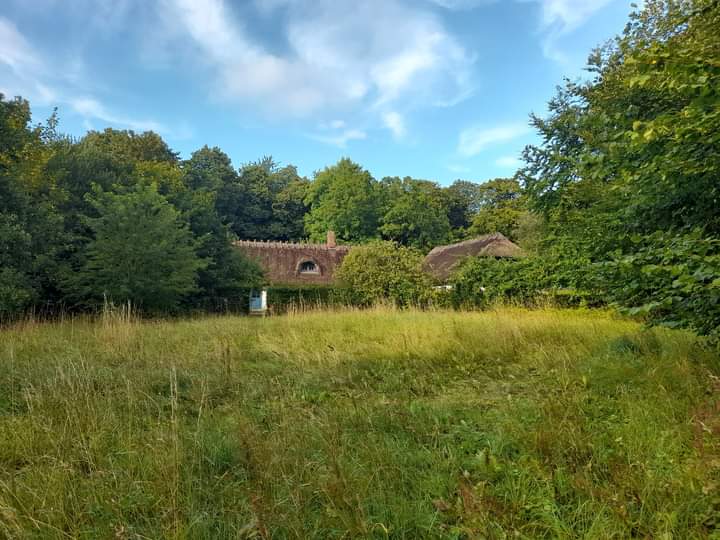 Nun stehen wir auf der Landzunge Knudshoved Odde. Der Weg ist gesäumt von hübschen Häuschen und ein Megalithgrab haben wir auch noch entdeckt.