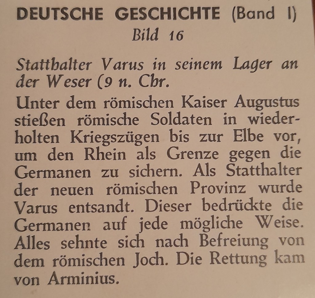 In wiederholten Kriegszügen stießen die römischen Soldaten bis zur Elbe vor. Germanien galt als römische Provinz und erhielt einen Statthalter. Er hieß Varus. Dieser war vorher Statthalter in Syrien gewesen.