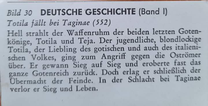 Leider enttäuschte er die Hoffnungen seines Volkes. Zwar war er ein tapferer Krieger, aber er erwies sich unfähig als Feldherr und endete als Gefangener. Um so heller erstrahlte der Ruhm der beiden letzten Könige der Ostgoten: Totila und Teja.