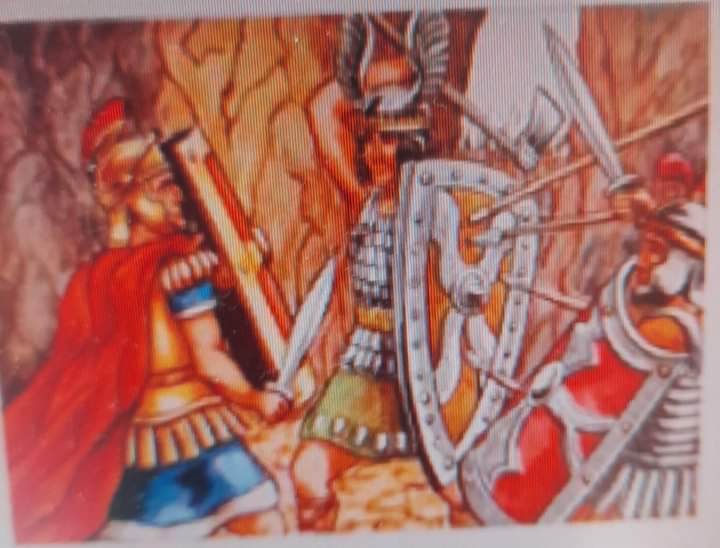 553 kämpften die Ostgoten ihren letzten Kampf am Vesuv. Wie ein Löwe focht Teja an der Spitze der Seinen. Immer wieder fing er mit dem Schild die feindlichen Speere auf; dann sprang er blitzschnell vor und erlegte viele Gegner. Doch schließlich fiel auch er: Als sein Schild, der von zwölf Speeren durchbohrt war, gegen einen anderen wechseln wollte, blieb seine Brust einen Augenblick lang ungeschützt. Da traf ihn der tödliche Wurf.