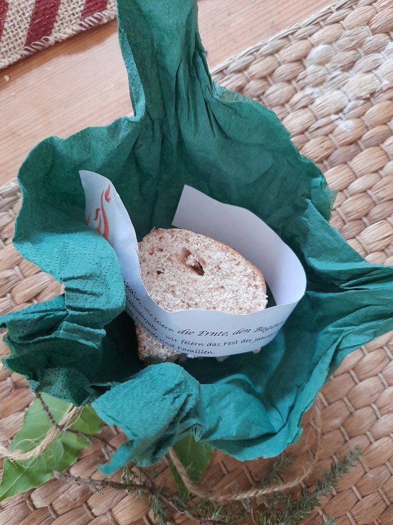 Inspiriert vom Ereignis des letzten Jahres, habe ich mir nun etwas ausgedacht. Es ist ganz einfach und schnell gemacht. Auf den Fotos seht ihr ein kleines Brötchen und eine Nachricht hübsch in eine Serviette gesetzt, und mit Thymian und Lorbeer verziert als Säckchen zusammengebunden. Ich nenne es einfach mal das Samhain-Säckchen.