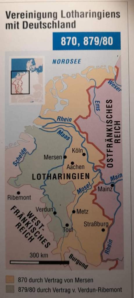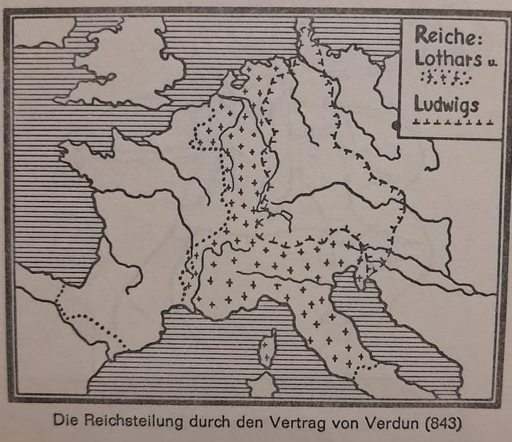Das Land westlich davon, bekam Karl der Kahle und östlich Ludwig der Deutsche (nach seiner Sprach so genannt).
