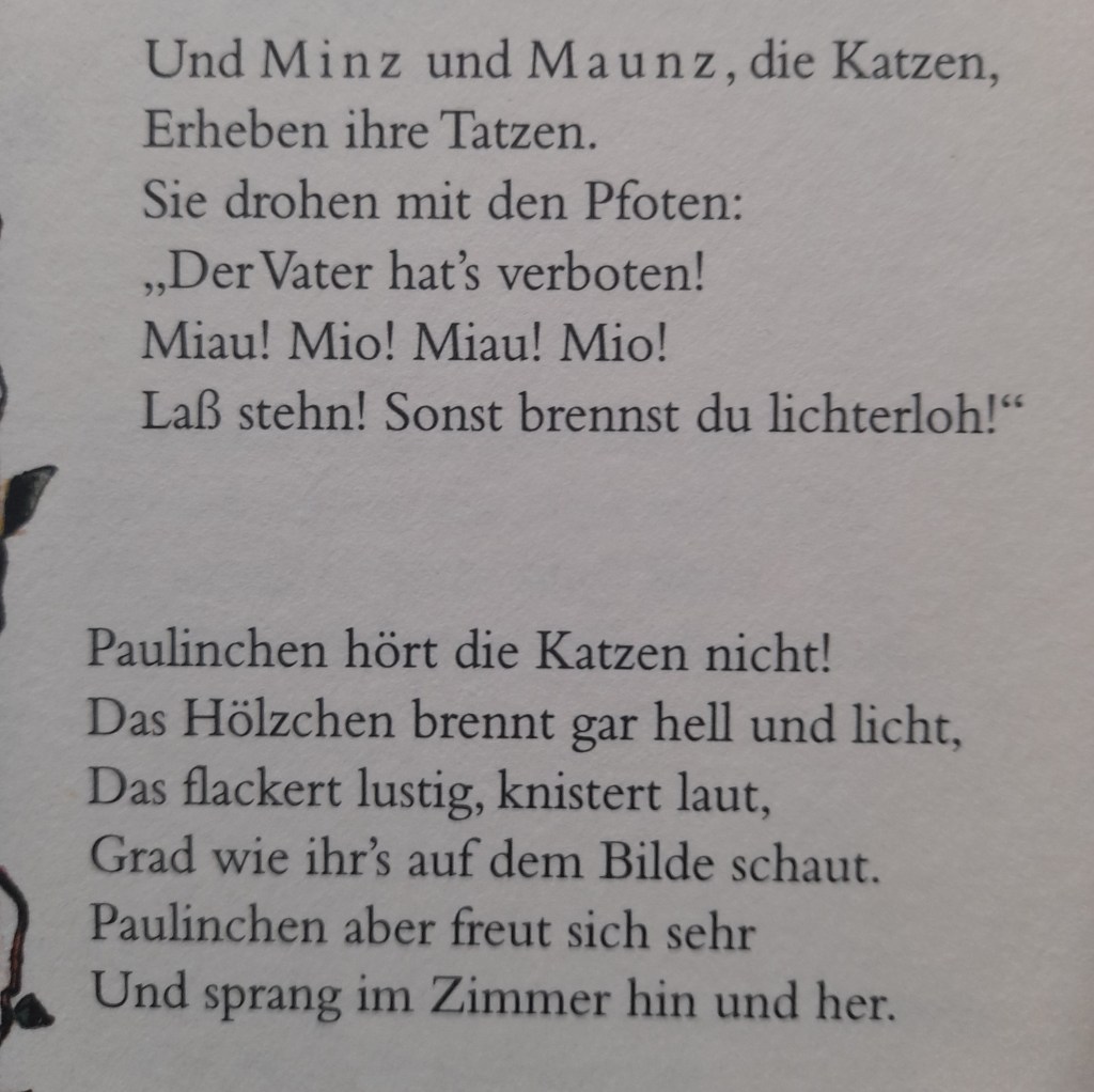 Da fällt mir doch „Die gar traurige Geschichte mit dem Feuerzeug“ ein. Erinnert ihr euch? Diese wirklich traurige Geschichte von Paulinchen, dem Feuerzeug und Minz und Maunz, den Katzen – eine Geschichte aus dem „Struwwelpeter“. Damals war es die Welt der Sagen, Fabeln und Märchen, heute sagen sie es uns auch manchmal „über die Filme“. Und das Groteske daran, die Regisseure und Drehbuchtautoren sind Teil der „Sie“…