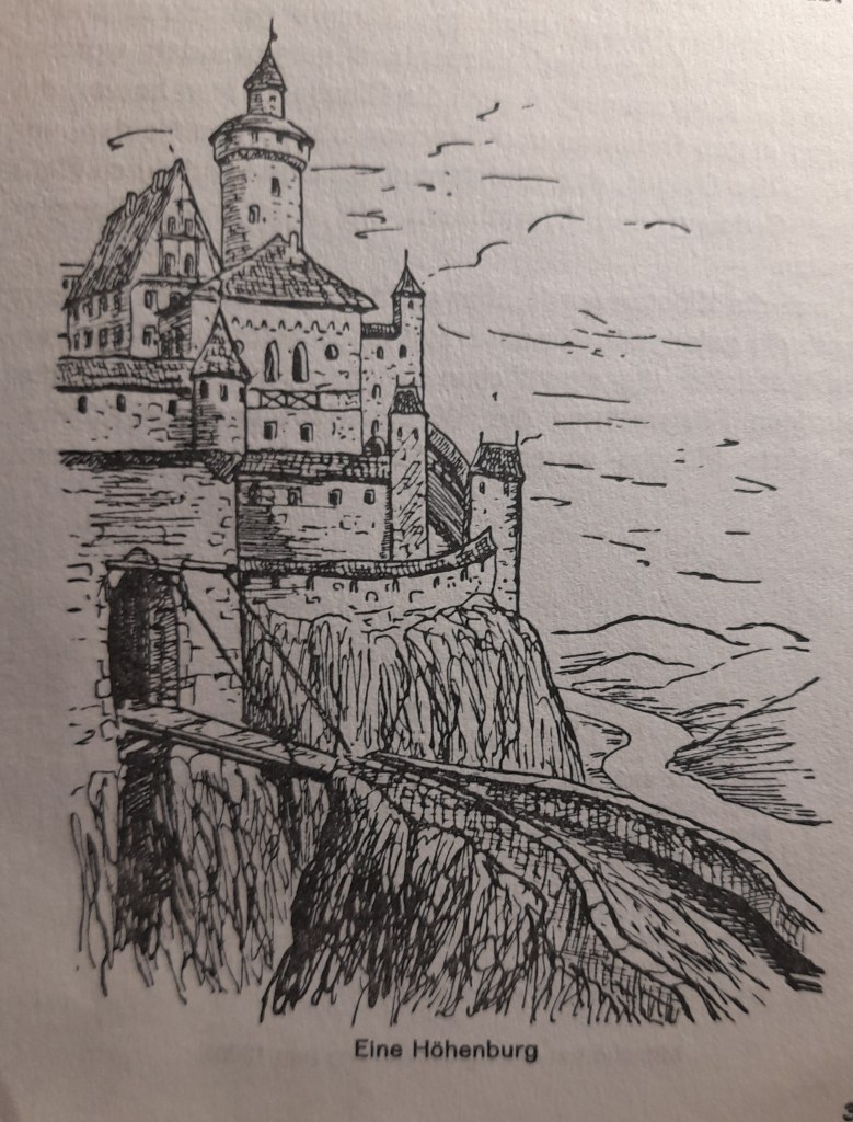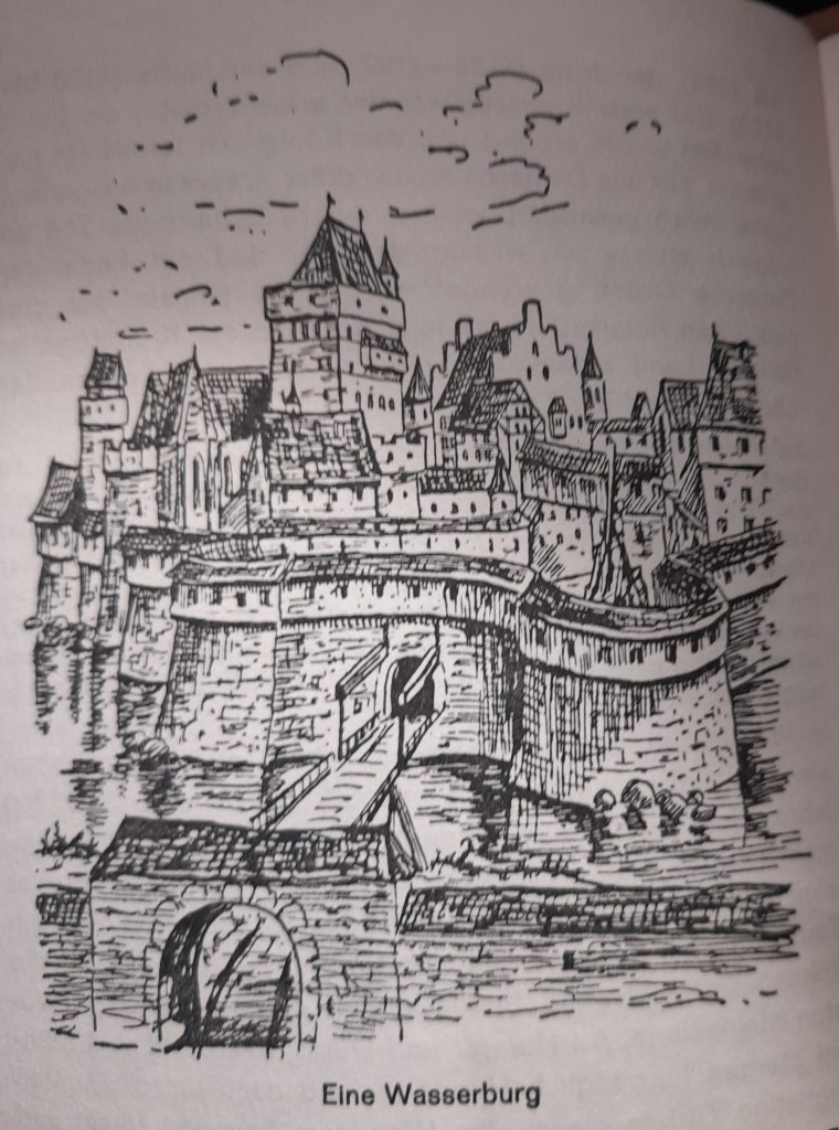 Die Wohnung des Ritters war die Ritterburg. Sie sollte ihre Bewohner bergen und gegen feindliche Angriffe schützen. Sie war also Wohnung und Festung zugleich, und je mächtige rund reicher ihr Herr, desto stattlicher und umfangreicher war ihr Bau. So ergab sich der Unterschied zwischen den vornehmen Hofburgen und den einfachen Ritterburgen. Die Burg musste möglichst unzugänglich sein, entweder auf steilem Berg liegen (Höhenburg) oder auf wasserumspülter Insel (Wasserburg). Hier führten die Menschen, oft auf engem Raum zusammengepfercht, ein wenig behagliches Dasein.