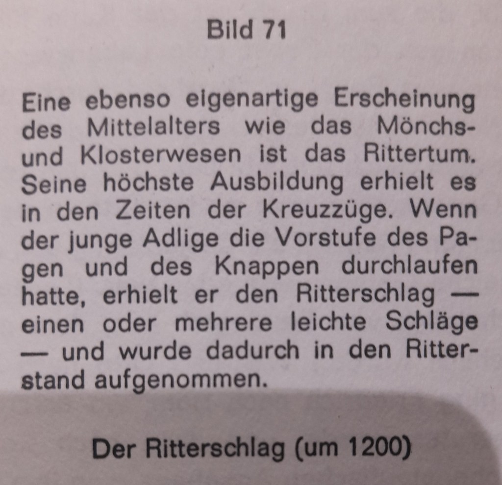 Seine hohe Weihe empfing das Rittertum durch die christliche Religion. Seine höchste Ausbildung erhielt es daher in den Zeiten der Kreuzzüge.