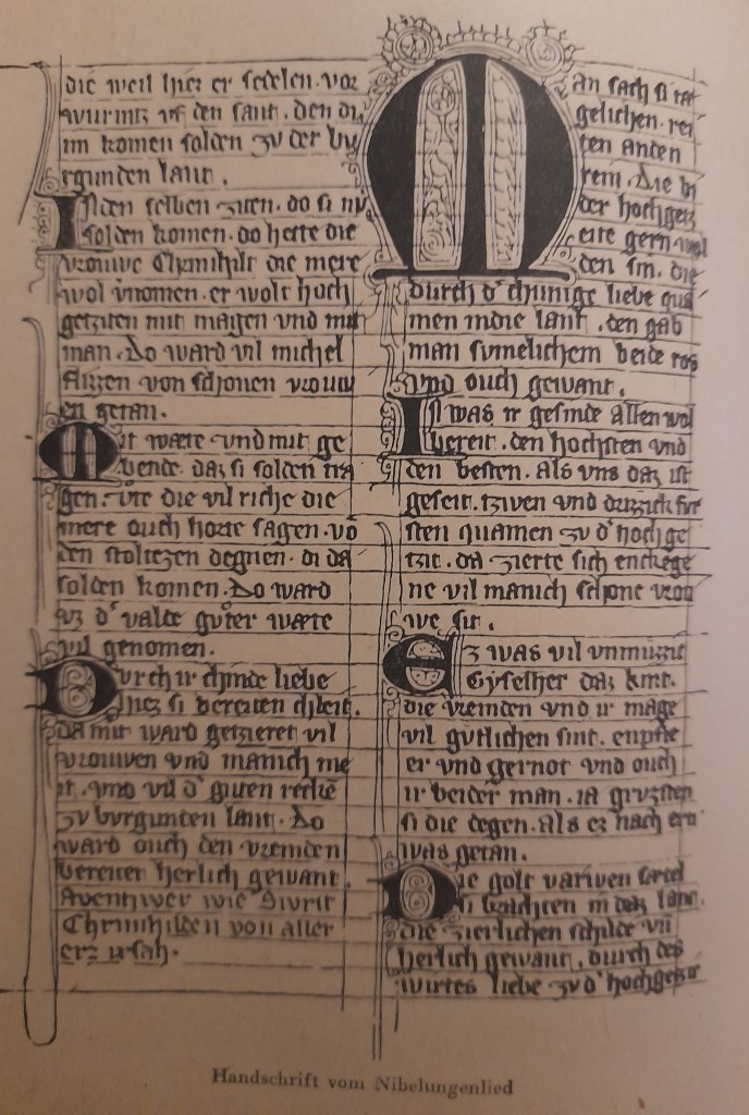 Die fahrenden Sänger waren auch die Träger des Heldengesanges. Sie pflanzten die uralten Lieder von Siegfried und Kriemhild, Brunhild und Gudrun, Hagen und Dietrich von Bern fort. So entstanden um 1220 in Österreich das Nibelungenlied und das Gudrunlied, deren Verfasser wir leider nicht kennen.