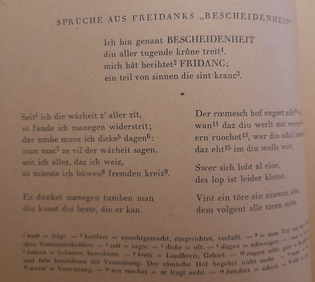Der weitaus bedeutendste Minnesänger war Walther von der Vogelweide. Wo seine Wiege gestanden hat, wissen wir nicht, wahrscheinlich aber in der Nähe von Bozen.