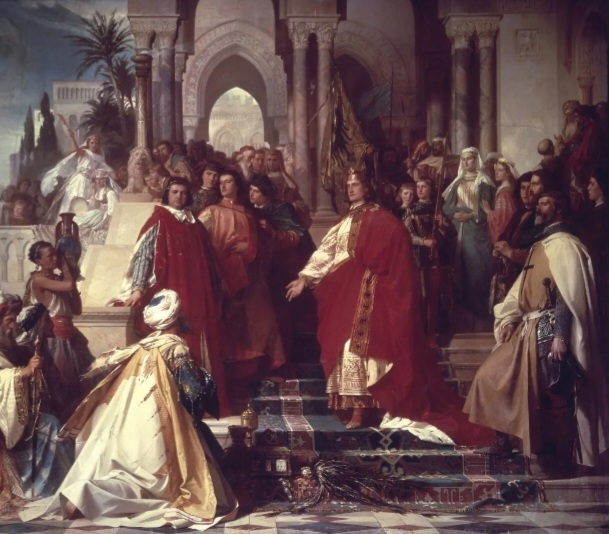 Der Sultan von Ägypten schloss ein zehnjährigen Waffenstillstand mit ihm und trat Jerusalem und den Zugang zum Meer her ab. Friedrich setzte sich in der Grabeskirche von Jerusalem selbst die Königskrone aufs Haupt und kehrte im Mai 1229 wieder nach Sizilien zurück. Auf päpstlicher Seite verschloss man absichtlich die Augen vor dem großen Erfolg. Friedrich aber strebte in kluger Mäßigung nach Versöhnung. Widerwillig und erst nach hartnäckigem Sträuben schloss der Papst Frieden und löste Friedrich vom Bann (1230).