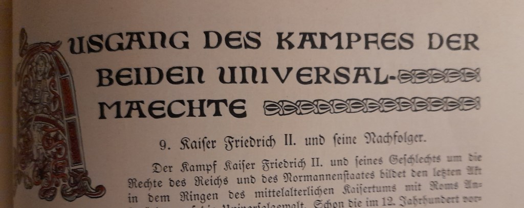Zum Sonntagabend gibt es noch ein wenig Deutsche Geschichte. Dieser dritte Teil des Kapitels zu Friedrich II. , reicht von der Zeit auf der Höhe seiner Macht bis zu Beginn des Entscheidungskampfes zwischen Kaisertum und Papsttum.