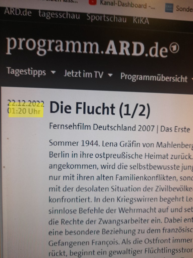 Doch, wer weiß um den Untergang der Gustloff, überladen mit Flüchtlingen? Die Zahl der Toten war höher als die der Titanic. Einen Film darüber gibt es jedoch nicht.