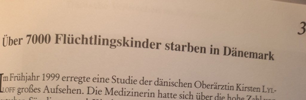 Wer weiß schon von den Morden dänischer Widerständler, oder von über 7000 Flüchtlingskindern, die nach dieser sogenannten „Befreiung“ in dänischen Lagern starben? An dieses düstere Kapitel erinnern lediglich ein paar Steintafeln, mehr nicht. Das größte Lager hatte 37 000 Insassen und lag in Oksbøll an der Westküste von Jütland. Mitverantwortlich für diese schweren Verbrechen war gewiss diese unsägliche Propaganda seitens der Alliierten. Doch ist das keine Entschuldigung. Die toten Kinder, viele darunter waren noch keine fünf Jahre alt, hießen Heinrich, Helmut und Walter, Gudrun, Karin oder Ingelore. Zu Hunderten liegen sie unter der Erde des größten Kopenhagener Friedhofs Vestre Kirkegård – in der entlegensten Ecke, wohin sich einheimische Trauernde kaum verirren.