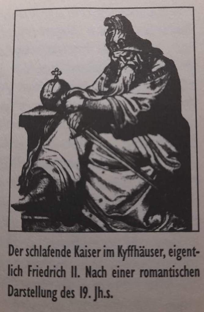 In den Herzen der Deutschen aber blieb eine tiefe Sehnsucht nach der versunkenen Kaiserherrlichkeit. Sie fand ihren Niederschlag in der deutschen Kaisersage vom Kyffhäuserberg, dies sich zunächst an Friedrich II. knüpfte, später auf Barbarossa übertragen wurde.