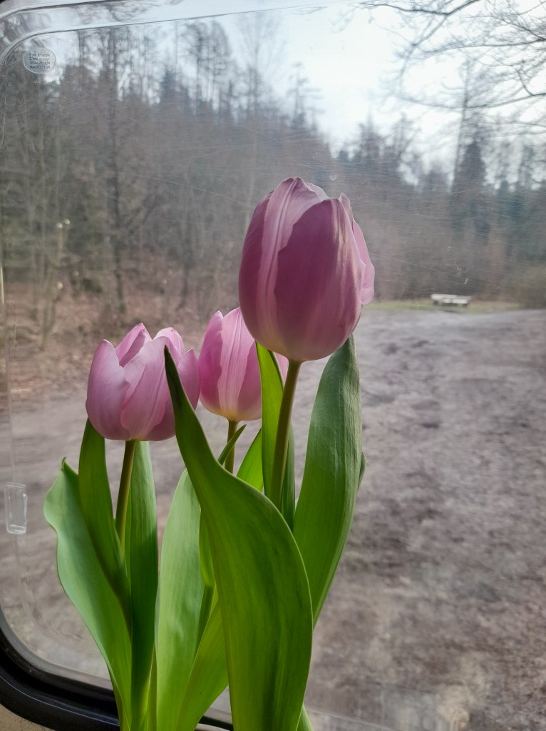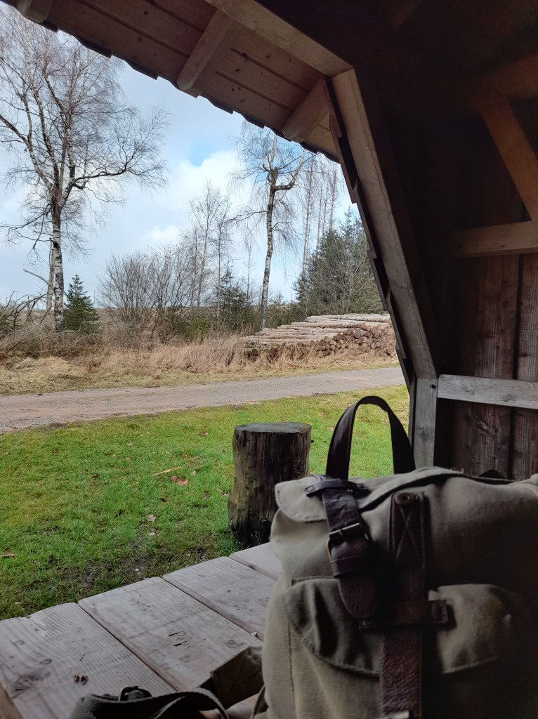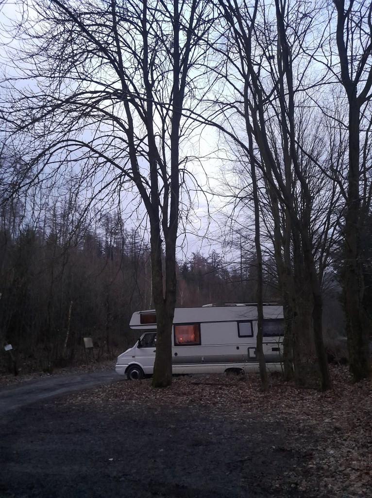 Mitte Februar: Schnell ein paar Sachen in unseren Bert „geworfen“, Wegzehrung verstaut und ab ins Grüne. In einem Waldstück, nahe einer wenig befahrenen Landstraße haben wir übernachtet.