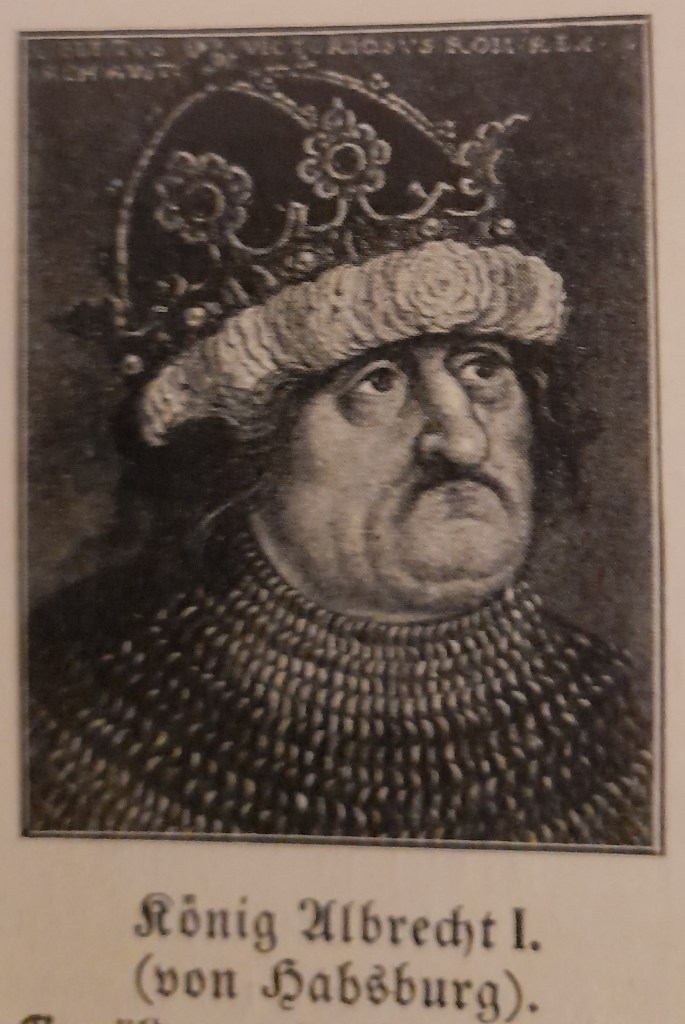 Sein Neffe Johann von Schwaben, der sich von ihm in seinen Ansprüchen benachteiligt fühlte, rannte ihm das Schwert durch den Leib, ein anderer Verschwörer spaltete ihm das Haupt. Im Angesicht seiner Stammburg starb der König, nachdem die Mörder geflohen waren, in den Armen einer einfachen Frau, Am Ort der grausamen Tat gründete Albrechts Gattin das Kloster Königsfelden. Johann Parricida (Verwandtenmörder) genannt, verscholl gänzlich, er soll als Mönche in Italien gestorben sein.