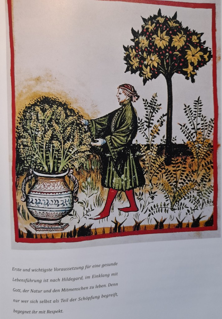 Hildegard von Bingen war nämlich vor allem eins: Eine große Heilende, eine Heilkundige, wie es die „Kräuterfrauen“ der keltischen und germanischen Frühzeit gewesen sind. Darüber hinaus war sie eine Naturkundige, eine Naturforscherin, wie ihre naturkundliches Werk „Physica“ belegt, und kannte sich bestens in der Tier- und Pflanzenwelt ihrer Heimat aus. Hildegard stand und lebte ganz in der Natur, die sie als Gesamtheit auffasste und als deren Teil sie sich sah. Also ist auch das “Grün“, das die Erde hervorbringt, in Hildegards Selbstverständnis zum Nutzen und zum Dienst am Menschen erschaffen.
