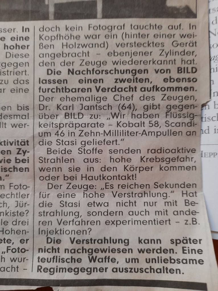 Wie das immer so ist: Gerade wollte ich mein Bücherchaos beseitigen, und anschließend über unsere mittelalterlichen Städte aus der Reihe „deutsche Geschichte berichten, da fällt mir dieser Zeitungsausschnitt „Das Geheimnis der Stasi-Strahlen-Kiste ins die Hände.