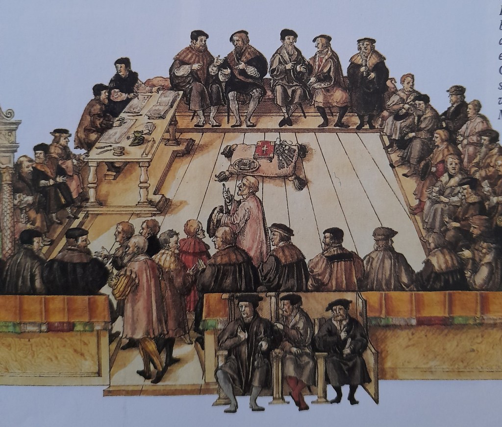 Weiter lesen wir von der mittelalterlichen Stadt und vom römischen Recht mit dem auch die Folter eingeführt wurde.