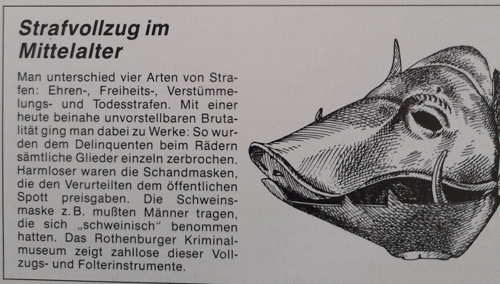 Mehr über Strafen, den Strafvollzug und zu den zahlreichen Mitteln im Strafvollzug des Mittelalters erfahren wir über Beiträge der nächsten Tage.