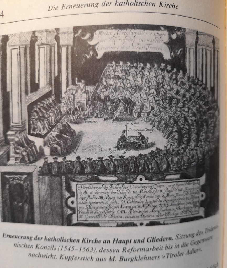 Die katholische Kirche machte in dieser Zeit die wichtigste Erneuerung durch, die sie bis dahin erlebt hatte. Man hatte erkannt, dass die Kirche vor allem sich selbst innerlich festigen müsse durch Beseitigung der hauptsächlichen Missstände. Und das geschah auf dem Konzil von Trient. Zustande gekommen war es 1545 durch Karl V., der damals kirchliche Reformen wünschte, um die Protestanten wieder in die Kirche zu ziehen.