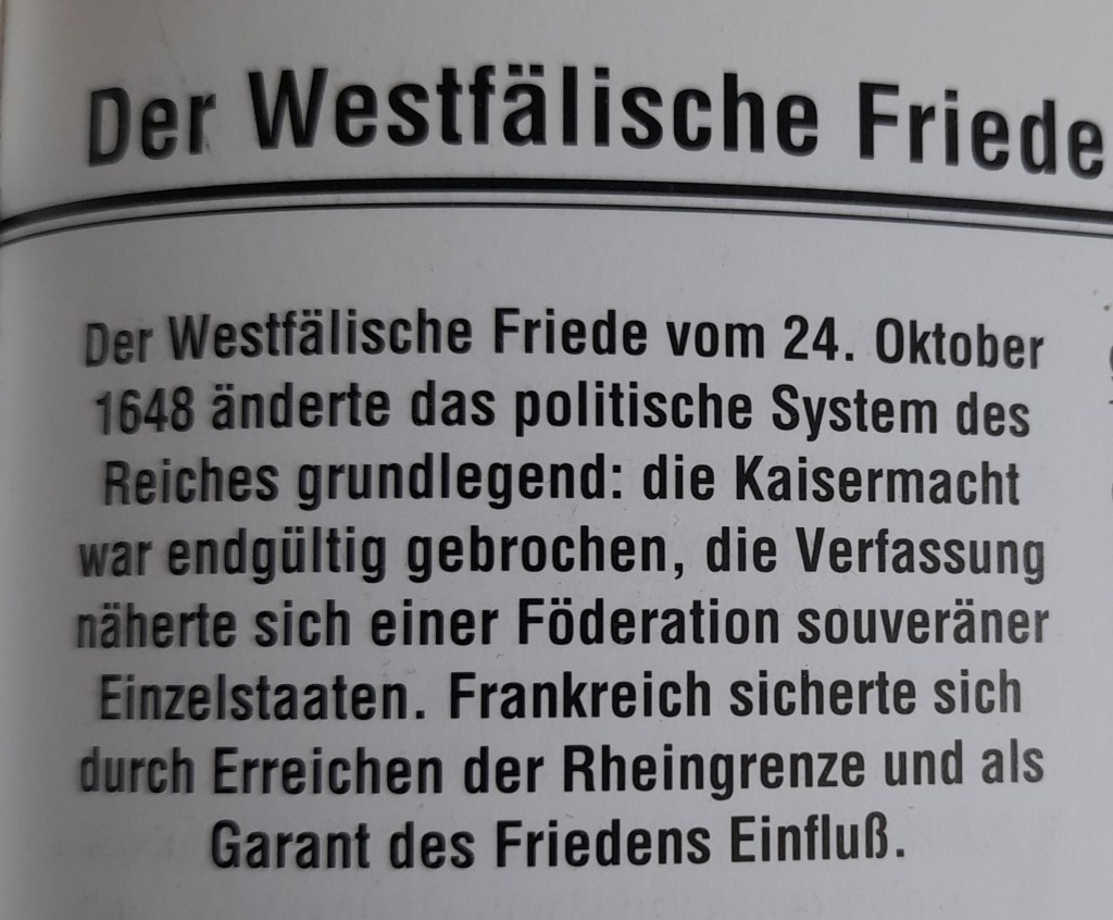 Auf der einen Seite stehen Staaten auf nationaler Grundlage, im Inneren gefestigt und nach außen sicher abgegrenzt: Frankreich, England, Holland, Schweden – auf der anderen Seite das in Auflösung begriffene Deutsche Reich, ein Spielball der Nachbarn.