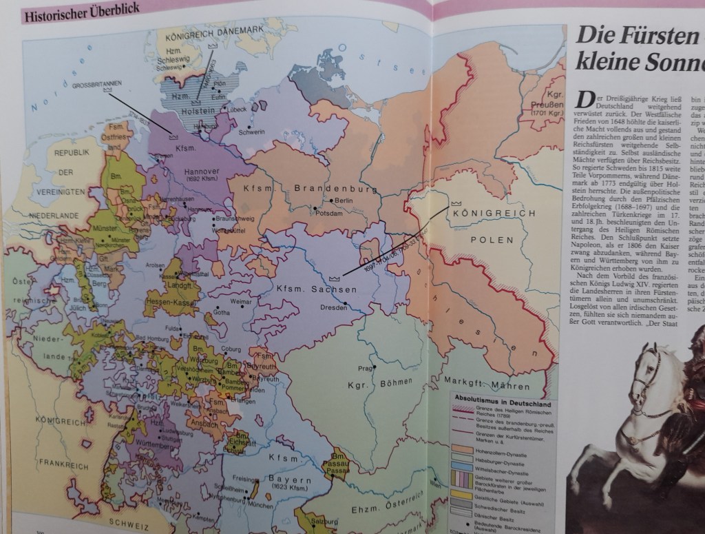 Im Innern war das Reich hoffnungslos zersplittert, ein Trümmerfeld von wenigen großen und zahlreichen mittleren, kleinen und kleinsten Staaten – um 1700 etwa 1700; im Lauf des 18. Jahrhunderts stieg die Zahl auf etwa 1800.
