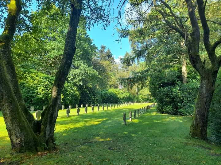 Wer über diesen Friedhof mit mächtigen Eichen, getrimmten Rasenflächen und trassierenden Rhododendrenreihen geht, der kann gedanklich nur schwer eintauchen in die Zeit nach Kriegsende.