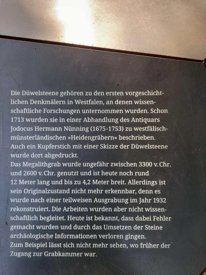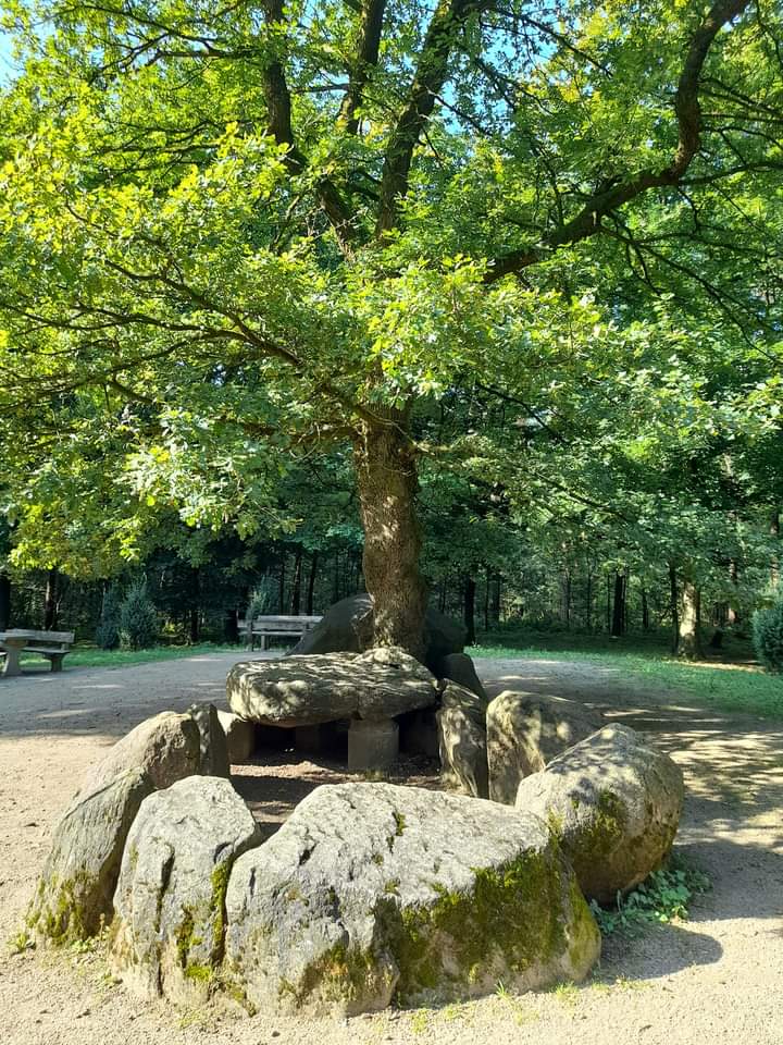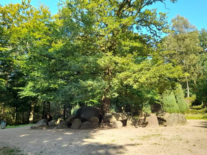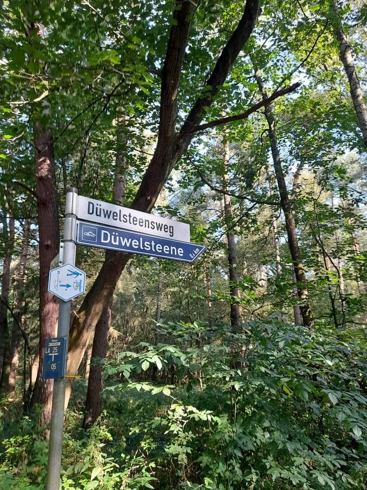 So war es dann am nächsten Morgen: Übernachtet haben wir in einem wunderschönen Mischwald zwischen Heiden und Groß Reken mit einem einladenden Picknickplatz. Von hier aus haben wir uns dann auf den Weg gemacht, zu den Düwelsteenen. Das sind 25 Findlinge , die vor etwa 4000 Jahren ein Steinkammergrab bildeten.