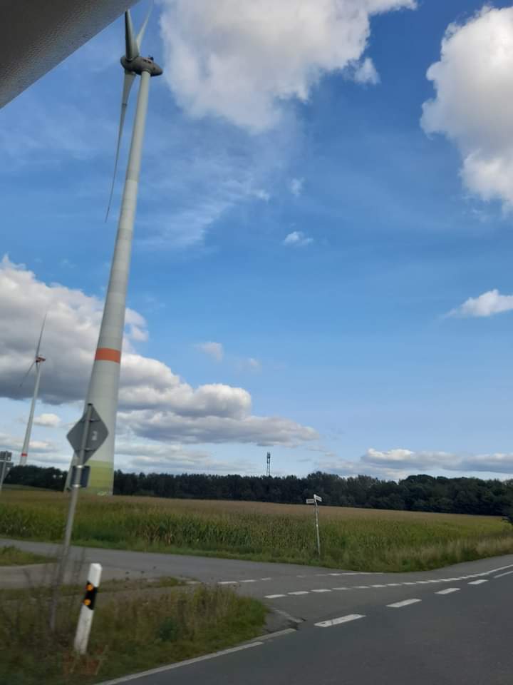 Wir sind nun auf der Suche nach einem Schlafplatz, oder besser: Auf der Flucht vor Windrädern…
