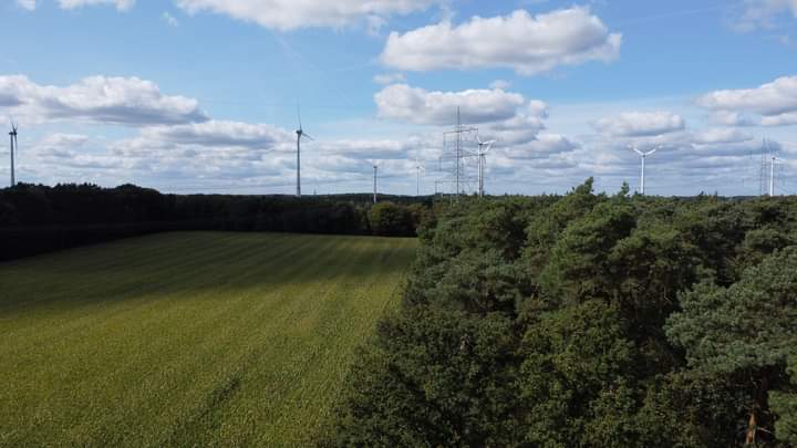 Weniger schön war der Eindruck am Kranenmeer, ein ausgewiesenes Naturschutzgebiet, in herrlicher Lage…Wenn es nur nicht von Windrädern umzingelt wäre. Das ist erschreckend anzuschauen. Mit der Drohne haben wir Aufnahmen gemacht, damit ihr euch das besser vorstellen könnt. Hier >über einem ausgewiesenen Naturschutzgebiet (Kranenmeer Heiden) . Wir haben auf unserem Spazierweg, die Flügel dieser unsäglichen Windräder schlagen hören.. Schrecklich!