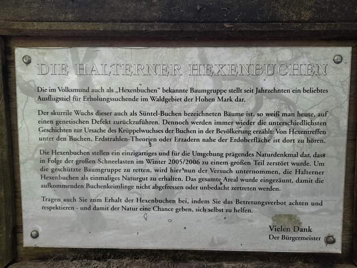 Das Gelände ist mittlerweile eingezäunt und soll aus Schutzgründen nicht betreten werden. Aus der Ferne haben wir dennoch ein paar schöne Aufnahmen machen können. „Die im Volksmund auch als “Hexenbuchen” bekannte Baumgruppe stellt seit Jahrzehnten ein beliebtes Ausflugsziel für Erholungssuchende im Waldgebiet der Hohen Mark dar. Der skurrile Wuchs dieser auch als Süntel-Buchen bezeichneten Bäume ist, so weiß man heute, auf einen genetischen Defekt zurückzuführen. Dennoch werden immer wieder die unterschiedlichsten Geschichten zur Ursache des Krüppelwuchses in der Bevölkerung erzählt: Von Hexentreffen unter den Buchen, Erdstrahlen-Theorien oder Erzadern nahe der Erdoberfläche ist dort zu hören. Die Hexenbuchen stellen ein einzigartiges und für die Umgebung prägendes Naturdenkmal dar, das in Folge der großen Schneelasten im Winter 2005/2006 zu einem großen Teil zerstört wurde.“
