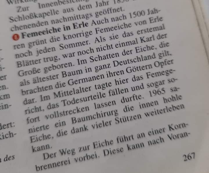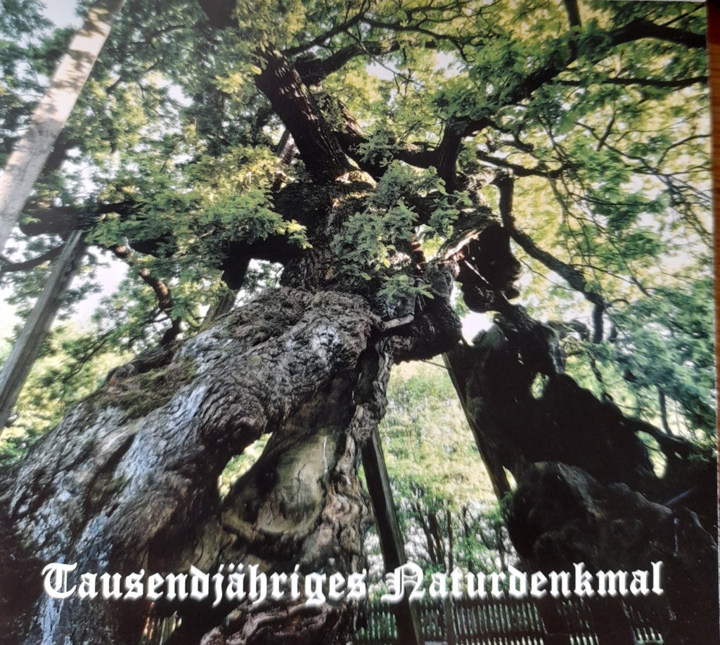 In unserem Buch aus den 1980er Jahren steht geschrieben: „Auch mit 1500 Jahren grünt die die knorrige Femeiche noch jeden Sommer. Als sie das erste Mal Blätter trug, war noch nicht einmal Karl der Große geboren.