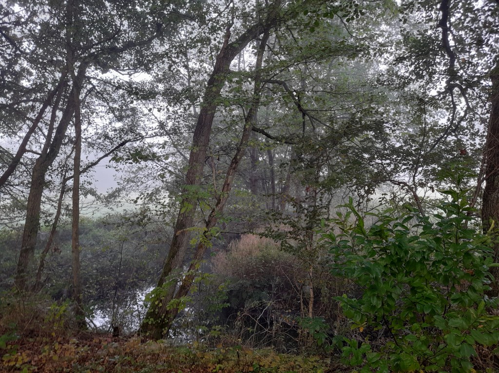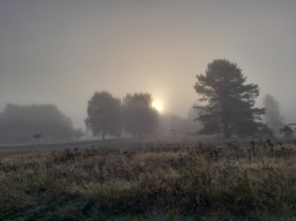 Gegenüber der gestrigen Morgenstimmung, offeriert sich hier in der Heide ein völlig anderes Bild. Mystisch und zauberhaft zugleich. Wir stehen inmitten von Nebelfeldern, die die Heidelandschaft in ein wunderschönes Gewand hüllen.