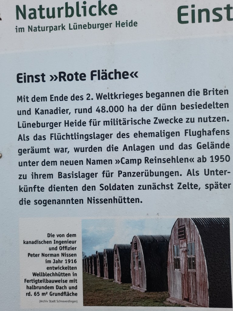 Mit dem Ende des 2. Weltkrieges begannen die Briten und Kanadier, rund 48.000 Hektar der dünn besiedelten Lüneburger Heide für militärische Zwecke zu nutzen. Als das Flüchtlingslager des ehemaligen Flughafens geräumt war, wurden die Anlagen und das Gelände unter dem neunen Namen „Camp Reinsehlen“ ab 1950 zu ihrem Basislager für Panzerübungen.