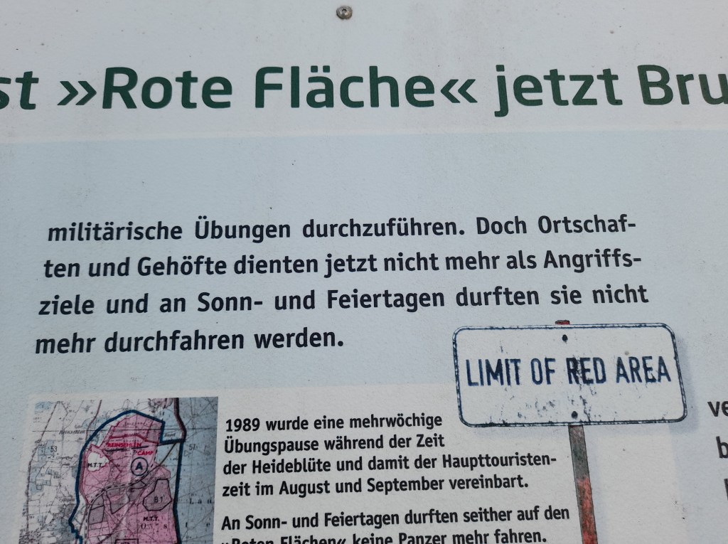 Diese Flächen – in den militärischen Karten rot dargestellt – wurden als „Rote Flächen“ bezeichnet. Rund 2000 ha – die Roten Flächen 1 und 2 – lagen im Naturschutzgebiet Lüneburger Heide. Bestrebungen der Stadt, des Landkreises und der Politiker auf Verkleinerung der „Roten Fläche“ zur Entlastung der Schneverdinger Bürger schlugen alle fehl. Lärm- und Staubbelästigungen müssen hingenommen werden, wobei die übenden Truppen auf Sonntagsruhe oder Heideurlauber keine Rücksicht nehmen. Ruhetage konnten die deutschen Behörden mit den britischen Dienststellen leider nicht vereinbaren.