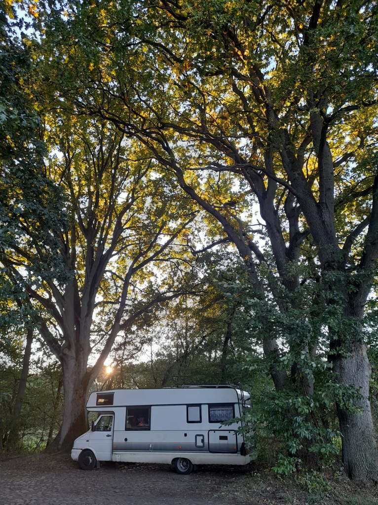 Da wir am morgigen Tag noch einige interessante Plätze anfahren möchten, suchen wir uns am besten einen Platz in unmittelbarer Nähe. Und tatsächlich werden wir fündig, und übernachten unter drei mächtigen Eichen, nur wenige Meter von den Großsteingräbern der Oldendorfer Totenstatt entfernt. Es herrscht eine gute Atmosphäre.