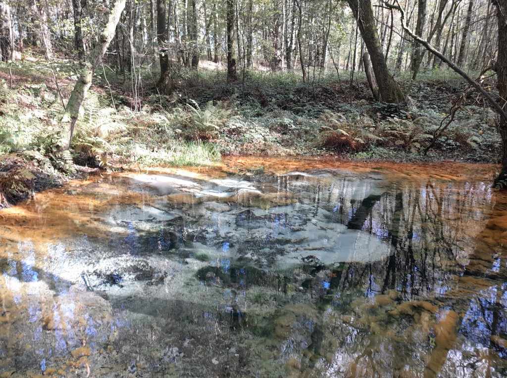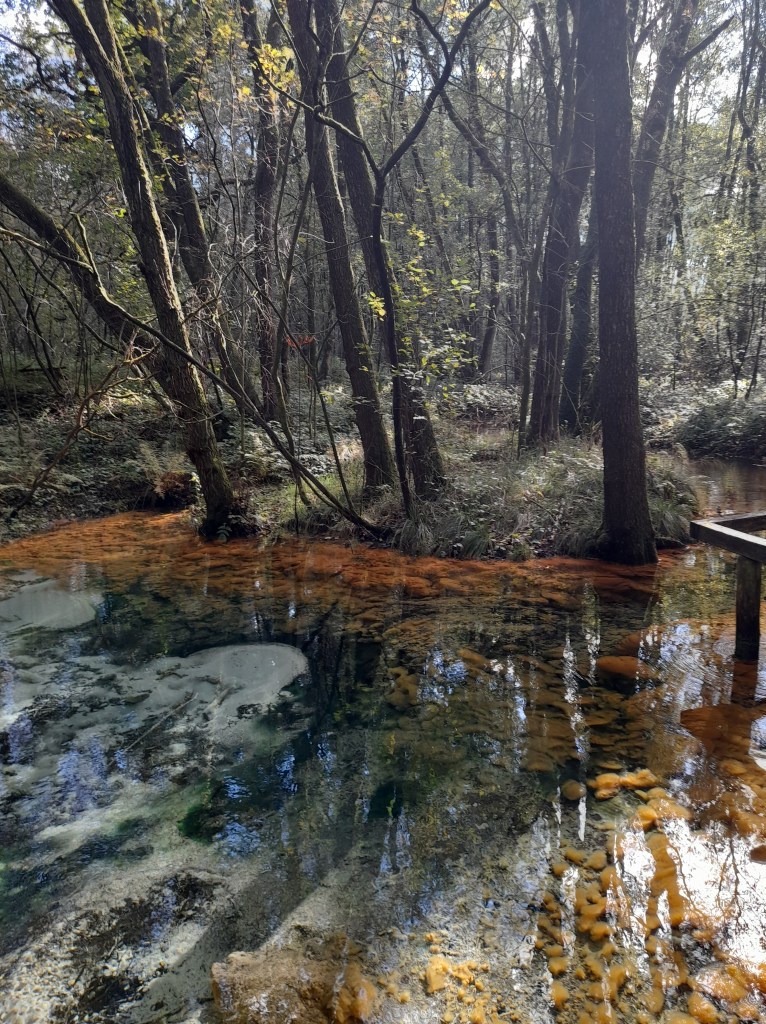 Weiter fahren wir zur Schwindequelle. Hier herrscht magisches Treiben inmitten einer mystischen Umgebung. Mit 60 Liter pro Sekunde ist diese Quelle nach der Ruhmequlle im Harz die zweitwasserreichste Quelle Niedersachsens. Hier kann man wunderbar sehen, wie das Wasser von unten her aus dem sandigen Grund drückt und dabei regelrechte Sandfontänen aufwirbelt und rötliche Eisenoxide sowie türkisfarbige Manganoxide ablagert.