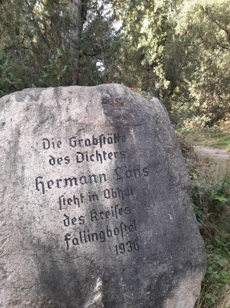 Den krönenden und würdigen Anschluss zu unserer Reise in den Heidekreis, macht der Besuch an Hermann Löns Grabstelle. Auch wenn wir leider den Eindruck haben, dass die Grabstelle des National, – und Heidedichters nur noch „geduldet “ ist…. Um so froher stimmt es uns, dass doch einige an seine Grabstelle finden und Blümchen auf den Stein legen.