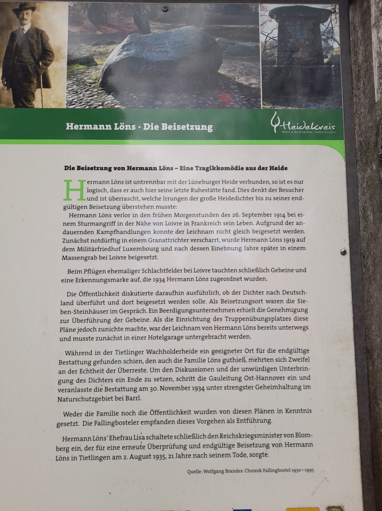 Hermann Löns war bereits 48 Jahre alt, als er sich freiwillig im Ersten Weltkrieg zum Militärdienst einfand, und in den Kriegswirren, in einer der ersten Schlachten leider ums Leben kam.