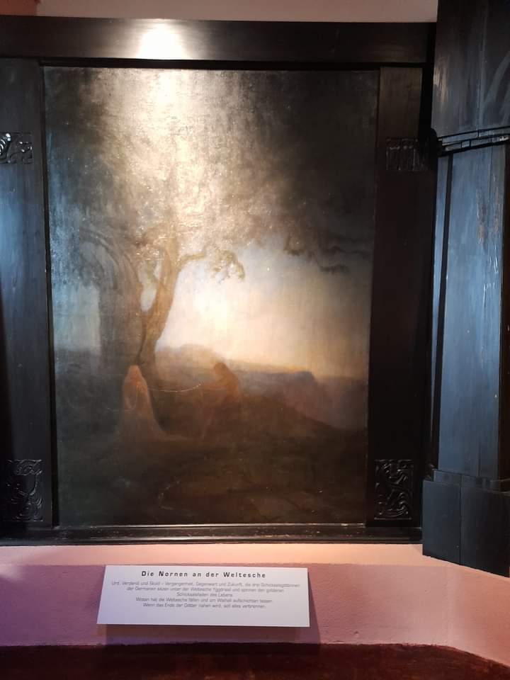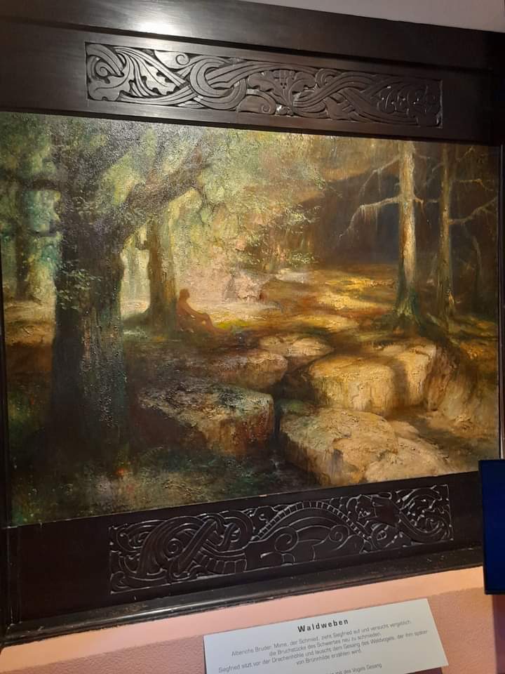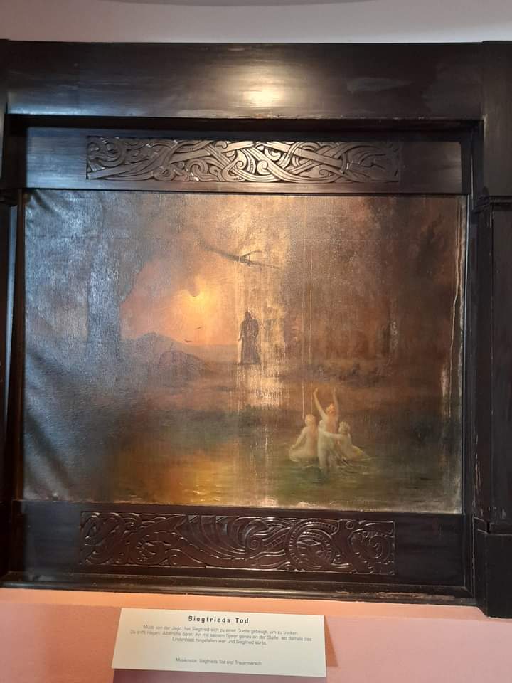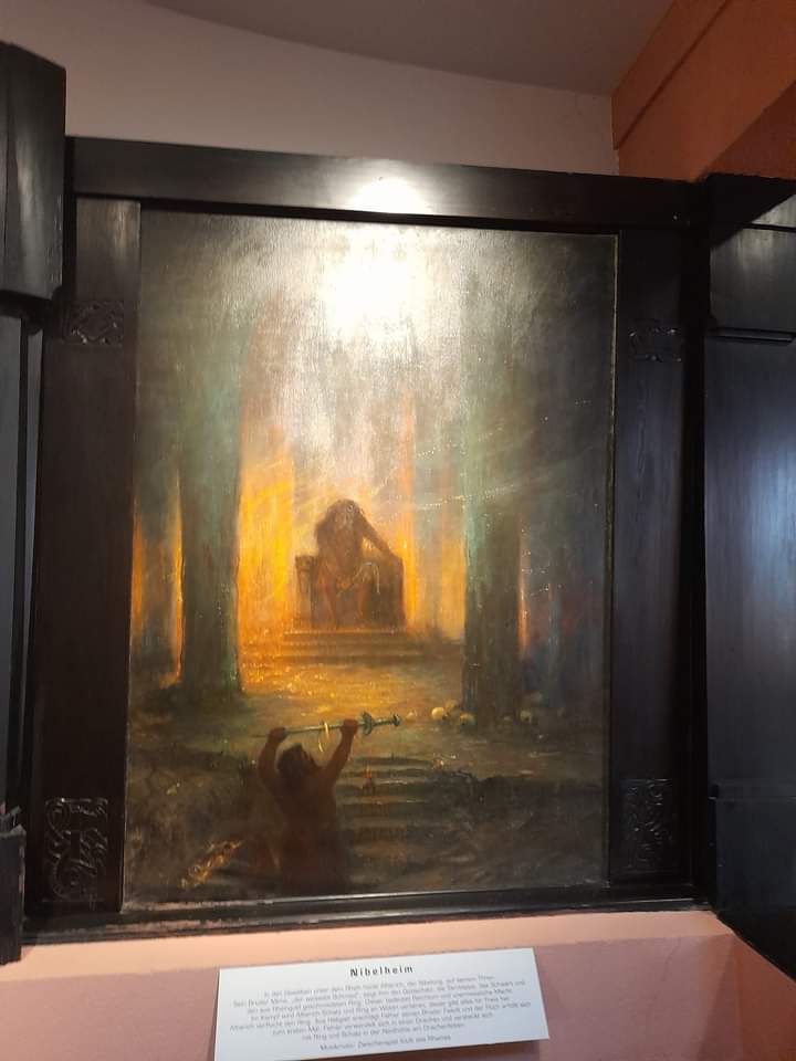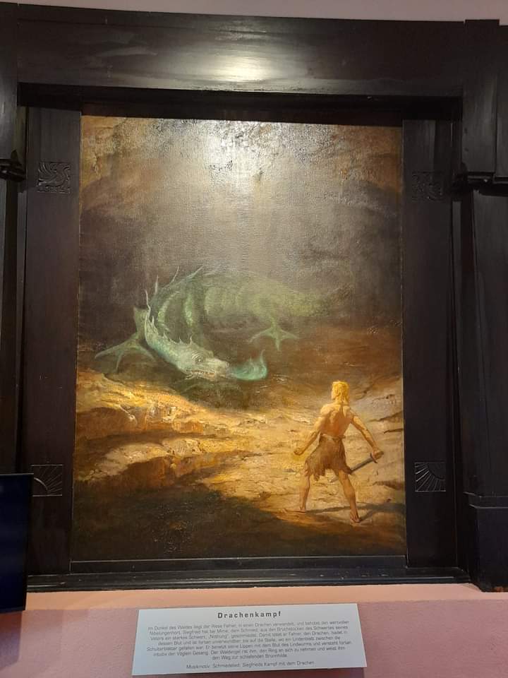 Hier, in der Nibelungenhalle befindet sich eine der berühmtesten Gemäldesammlungen zum „Ring des Nibelungen“ des Malers Hermann Hendrich. Die Nibelungensage war der Grund, die Halle hier am Drachenfels zu Ehren Richard Wagners zu errichten. Der Kuppelbau bewahrt mystisch anmutende Gemälde zu den vier Ringopern Rheingold, Walküre, Siegfried und Götterdämmerung.