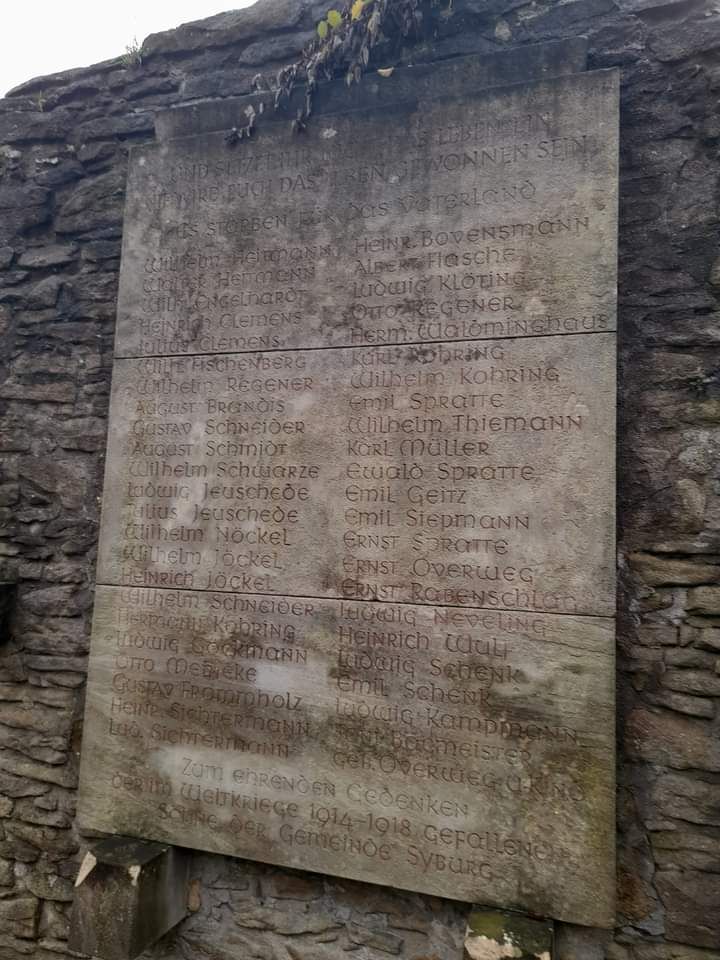 In unmittelbarer Nähe befinden sich drei große steinerne Tafeln. Andächtig stehen wir davor. Es sind wieder ganze Familien, die als Kriegsopfer zu beklagen sind. Opfer aus den Kriegen 1870/71, als auch aus dem Ersten Weltkrieg und seinem Anschlusskrieg. Unzählige deutsche Opfer sind zu beklagen. Die wahren Kriegstreiber hierfür sind bekannt.