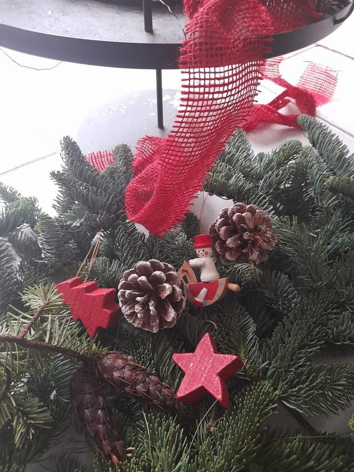 Anschließend versehen wir das Grün zumeist mit roten Bändern. Sie wirken als Träger der Seele. Warum das? Es steht geschrieben, das atmende Wesen mit rotem Blut in der Antike als beseelt galten.