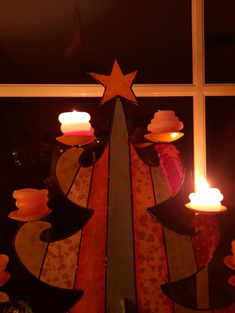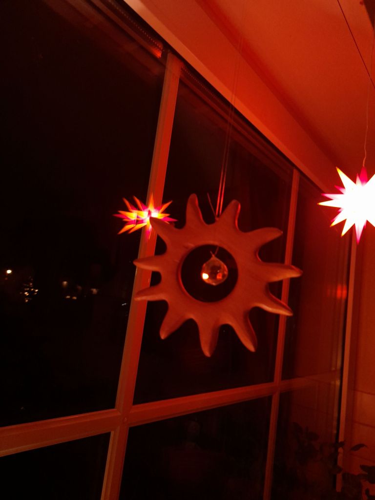 Fortsetzung zum „Weihnachtsbaum/Weltenbaum“ folgt. Es sind ja noch ein paar Tage hin, bis die grünen Bäumchen im Hause Einzug halten, und unter anderem mit einer golden leuchtenden Sonne behangen werden, die für die Hoffnung auf die Wiederkehr des Lichts steht.