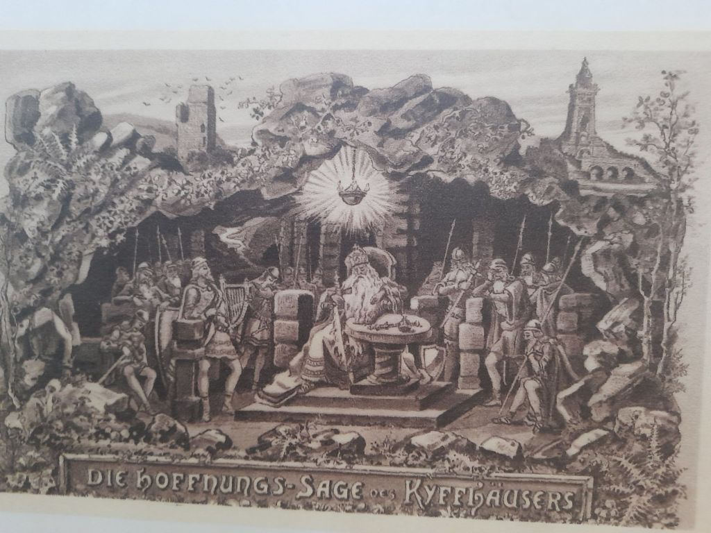 Tief drunten mit treuen Vasallen, Da sitzet der Herrscher so bleich, Und wehklagend zieht durch die Hallen Der Schatten vom deutschen Reich.