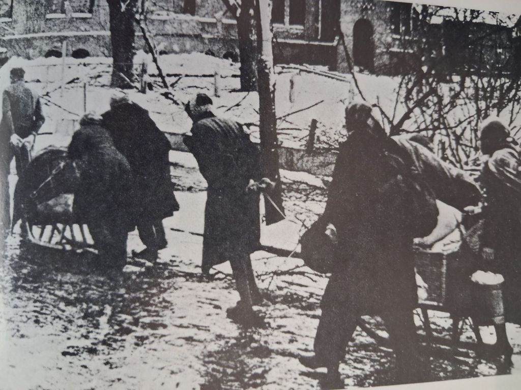 Mein Grossvater flüchtete mit den grösseren Kindern getrennt in einem Güterzug. Er war nicht kriegstauglich gewesen, sondern hatte in Königsberg U Boote gebaut. Er wäre oft fast als Deserteur erschossen oder von den desolaten deutschen Truppen noch zum Kämpfen mitgenommen worden.